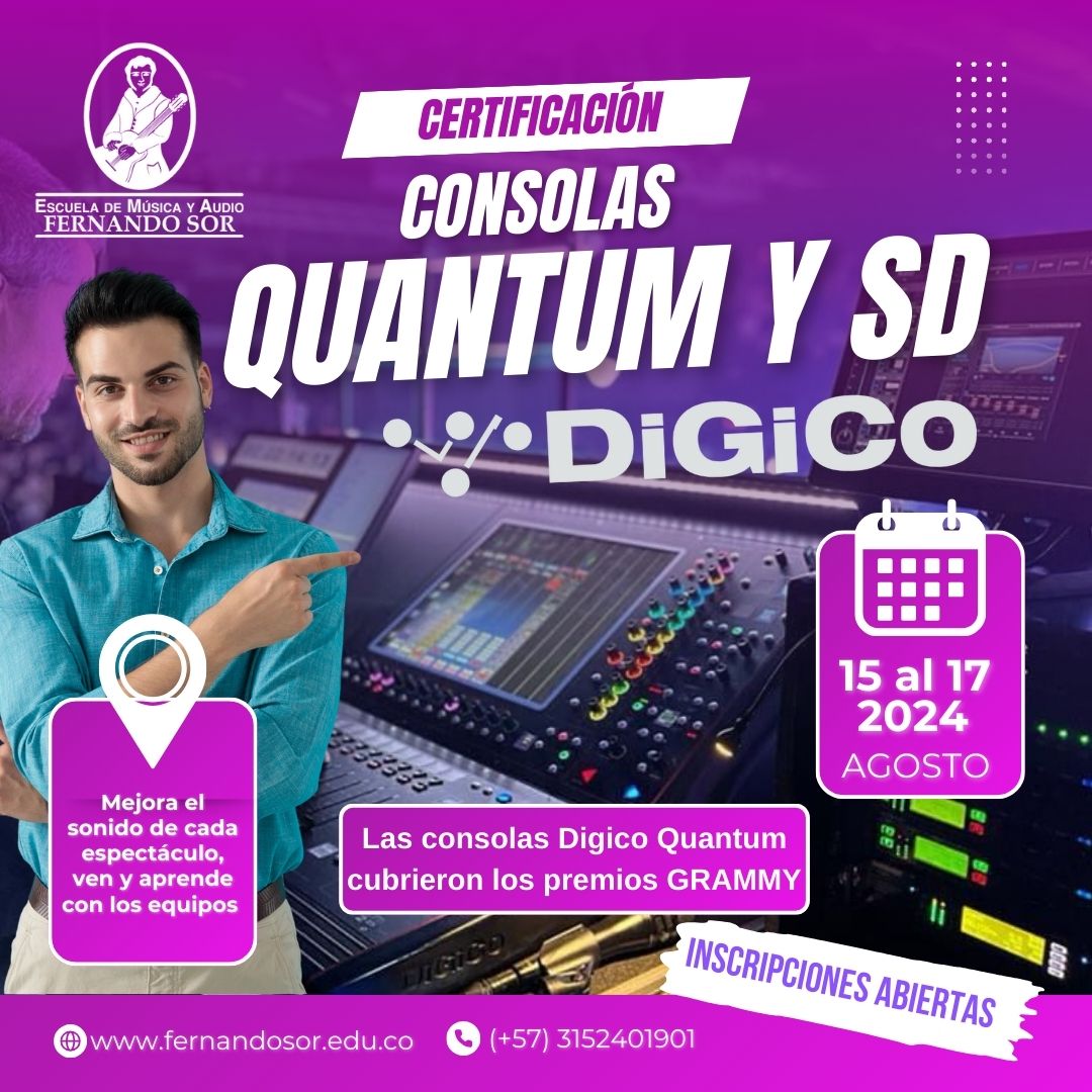 Certificación Consolas Digico y aprende a manipular y dominar las consolas de la serie SD y la Quantum 225 Digital Mixing Console; desde ser usuario eventual hasta girar con ella en conciertos.
