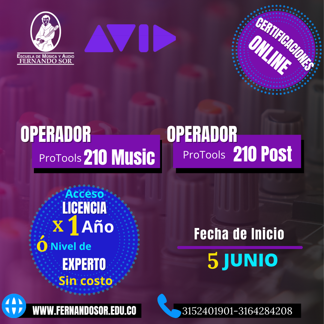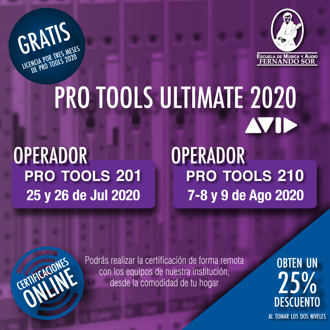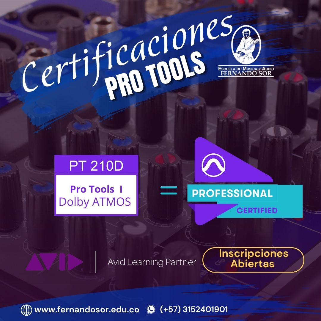 Certificaciones Avid Pro Tools, la escuela de Música y Audio Fernando Sor certifica en Pro Tools Ultimate de Forma Presencial ó  Virtual a través de Avid validando las habilidades del usuario de principiante a experto.
