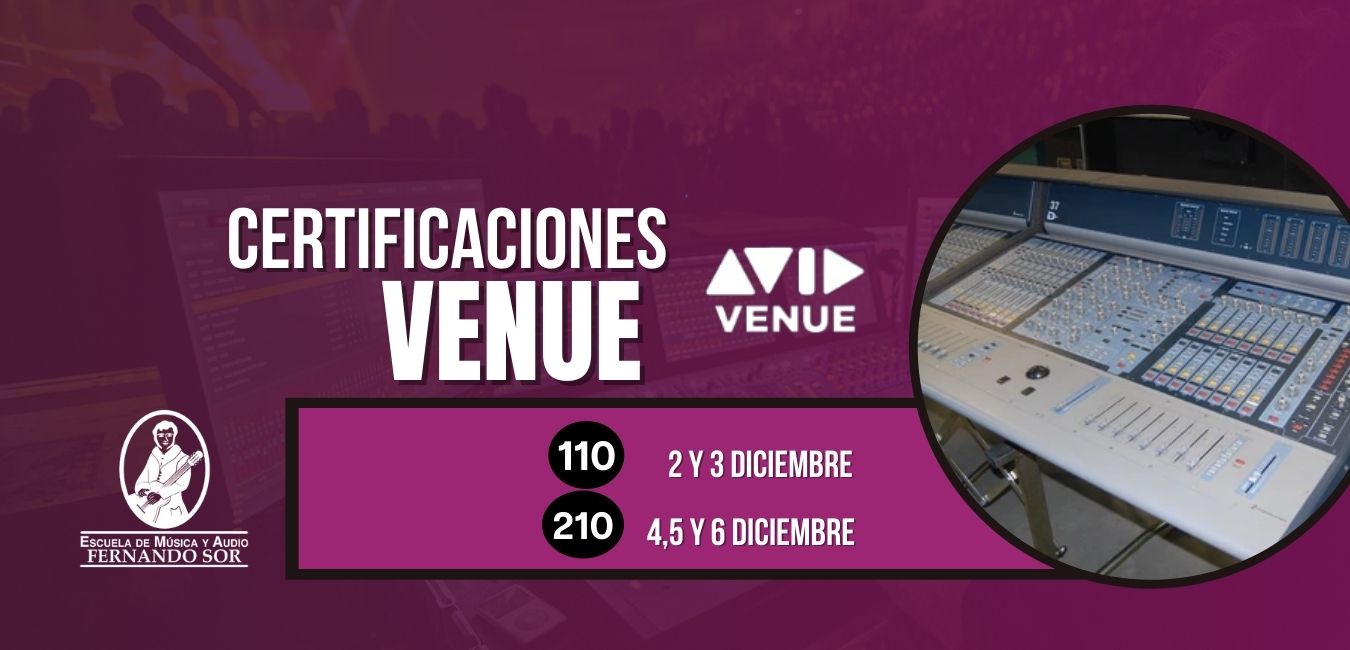 Certificación venue 110 y 210 .La escuela de música Fernando sor es la primera institución latinoamericana en certificar todos los sistemas Avid tales como: D-Show, Sc48, Profile y S6L, esta certificación le dará las herramientas suficientes para poder estructurar de forma correcta todas las referencias de la familia VENUE.